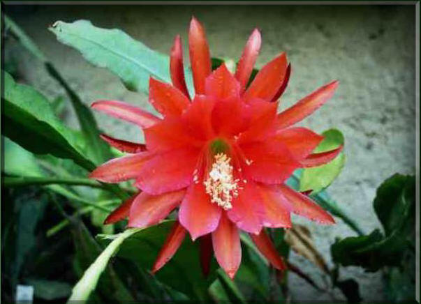 in Form wie Epiphyllum crenatum, aber rotorange mit violetten Schatten |