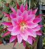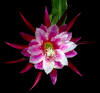 innere Petalen hell bis dunkel purpur mit weißen gekräuselten Rändern, äußere Petalen purpur, lang und schmal |