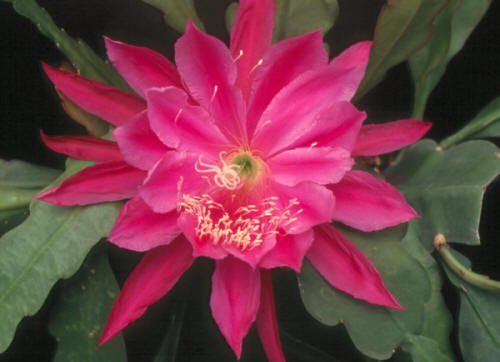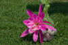pflaumenpurpur mit dunklerem Mittel-streifen, gekräuselt, äußere Petalen purpur mit rot überhaucht |