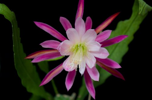 innere Petalen creme mit einem hell rosa-purpur Mittelstreifen. Äussere Petalen dunkel purpur. |