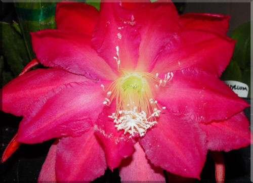 wassermelonenrot mit weißem Schlund, einige innere Petalen gekräuselt |