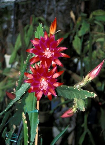 innere Petalen lachrot mit violetten bis karminroten Rändern. Äussere Petalen dunkles lachsrot. |