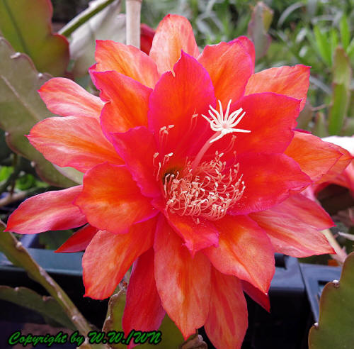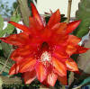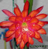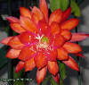 gelb mit breitem orange Mittelstreifen und schmalen kirschroten Rändern. Äussere Petalen orange mit gelben Streifen und kirschroten Rändern |