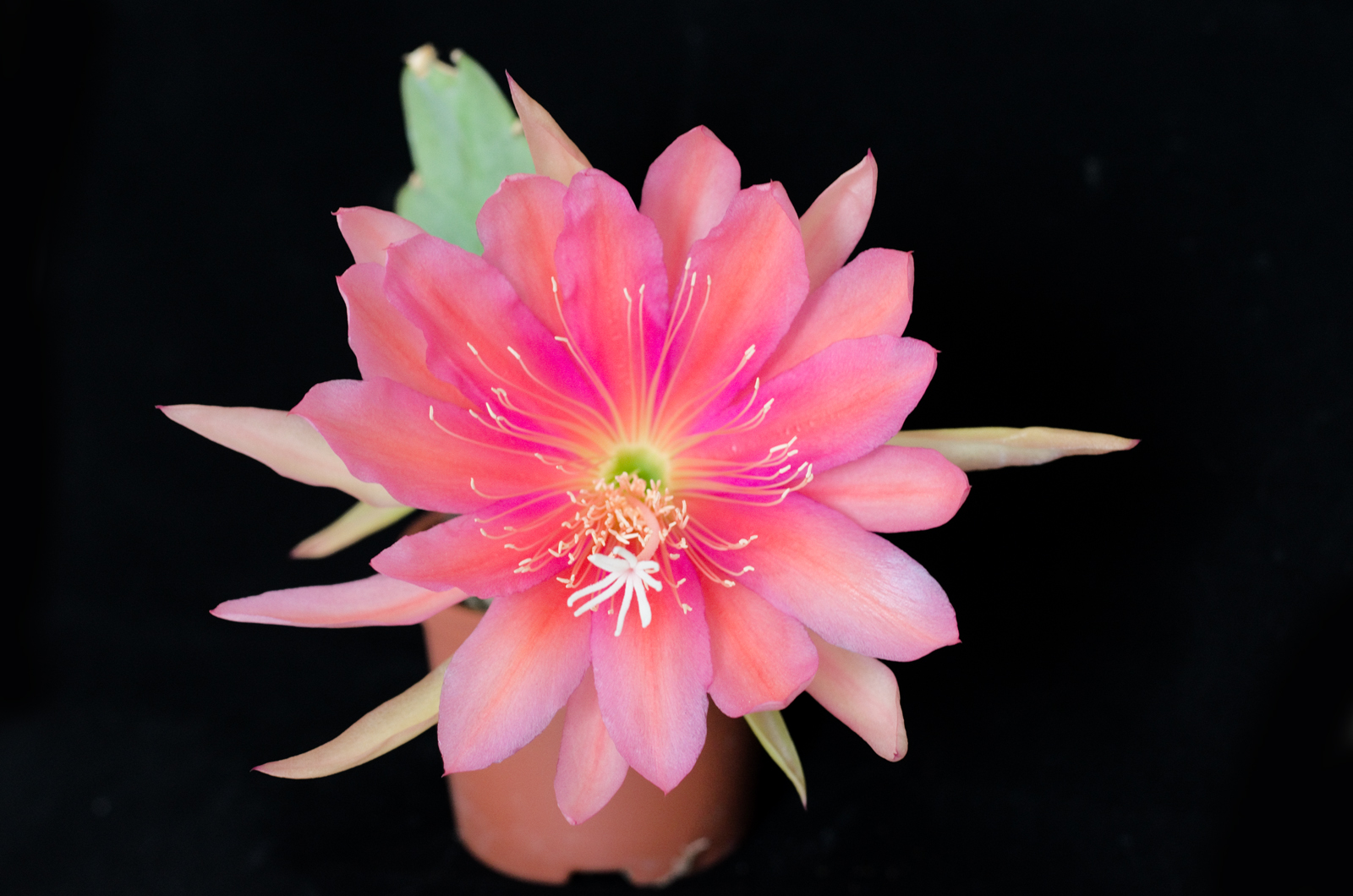bronze - rosa - lila. Weisser Schlund. Äussere Petalen kirschrot. |