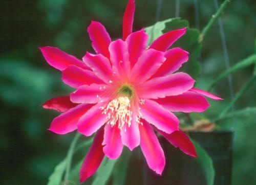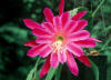 innerste Petalen kräftig kirschrot mit orange-rotem Mittelstreifen und gezackten Rändern in hellem kirschrot bis weiß, nächste Reihe kräftiges kirschrot mit helleren Rändern und orange-rotem Mittelstreifen, äußere Petalen dunkel kirschrot mit rotem Mittelstreifen |