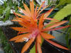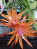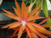 Blüte in leichten orange Abstufungen, rosa bis pinkfarbener Schlund |