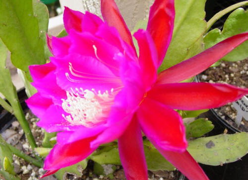innere Petalen kirschrot mit karmin Rändern, nächste Reihe karmin mit kirschroten Rändern, äußere Petalen dunkelrot |