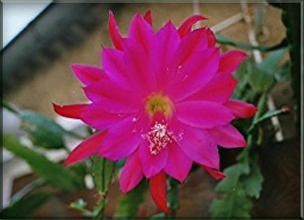 Petalen leuchtend pink und weinrot, äußere Petalen dunkles weinrot mit dunkelorangem Mittelstreifen |