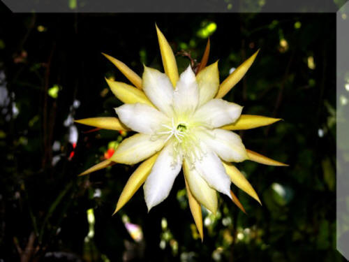 creme mit zitronengelben Tupfen und schmalen zitronengelben Rändern, die nächsten 2 Reihen haben mehr gelb, 4. und 5. Reihe komplett zitronengelb, äußere Petalen bronze mit zitronengelbem bis rotorangem Mittelstreifen |