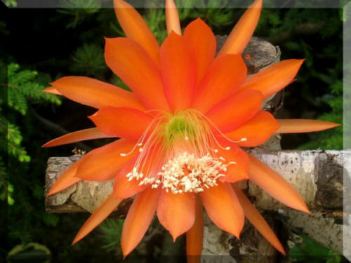 orange Blüte mit karminrotem Schlund, äussere Petalen leuchtend rot-orange |