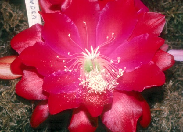 melonenrot, kirschrot überhaucht und an den Rändern, 2.Reihe kirschrot über melonenrot, äußere Petalen orange mit gelbbraun überhaucht |