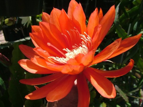 kapuzinerkressen-orange mit roten Rändern, äußere Petalen scharlachrot |