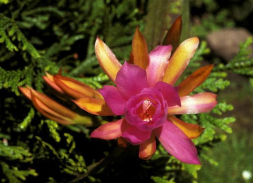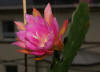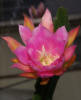 innere Petalen hellrosa. Äussere Petalen creme-gelb mit rosa Rändern. |