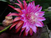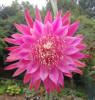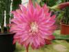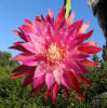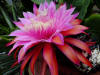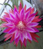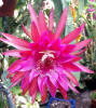 erste Reihe der inneren Petalen rot mit purpur roten Rändern. Nächste Reihe orange mit purpur rosa Rändern. Dritte Reihe violett rosa mit purpur rosa Mittelstreifen. Äussere Petalen orange rot mit purpur Rändern. |