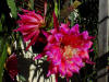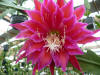 erste Reihe der inneren Petalen rot mit rosa-purpur Rändern. Nächste beiden Reihen rot mit breiteren rosa-purpur Rändern. Nächste Reihe rot mit purpur Rändern. Äussere Petalen rot mit sehr schmalen purpur Rändern. |