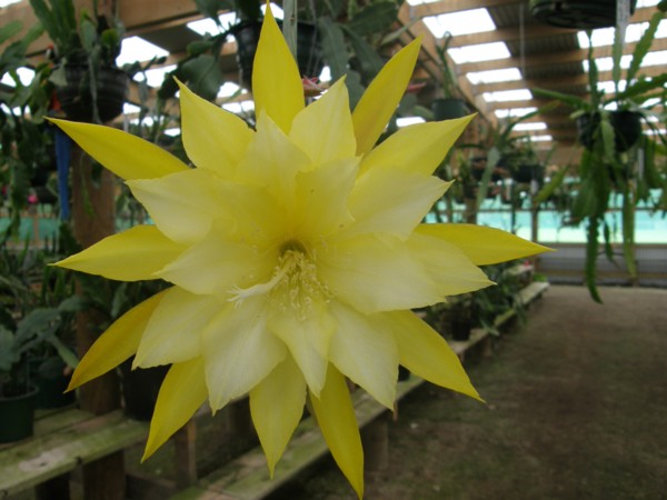 erste Reihe der inneren Petalen gelb. Nächste Reihe hell grün-gelb mit gelben Rändern. Äussere Petalen gelb. |