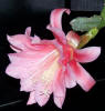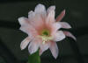 zartrosa und leicht marmoriert. Äussere Petalen zartrosa. |