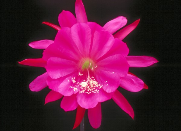 innerste Petalen kräftig kirschrot mit dunklerem Mittelstreifen und helleren Rändern im Schlund, nächste Reihe dunkler mit karminfarbenem Mittelstreifen, äußere Petalen dunkel kirschrot mit karminfarbenem Mittelstreifen |