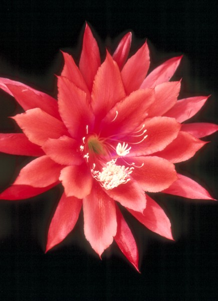 zinnoberrot mit lavendel-farbenen Rändern im Schlund |