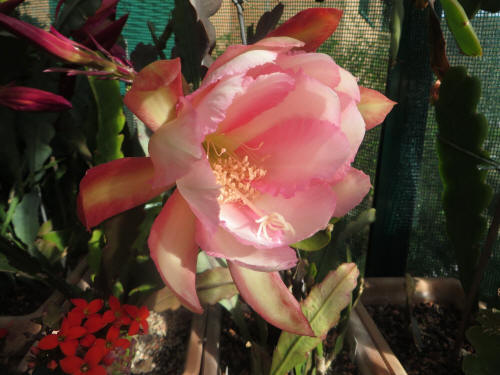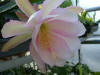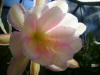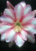 rosa mit weißem Mittelstreifen, äußere Petalen rosa, gelb. |