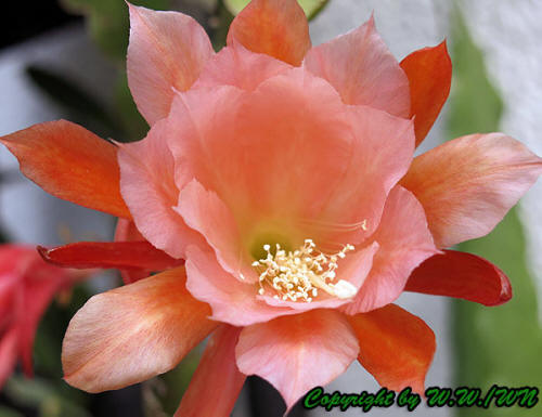 karminrosa. Äussere Petalen azaleen-rosa. |