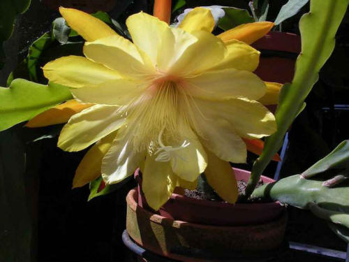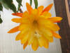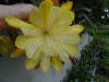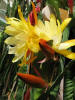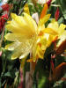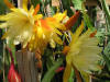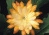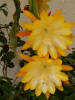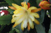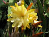 hellgelb, innere Petalen gekräuselt, äußere Petalen bernsteinfarben, gold und orange schattiert |