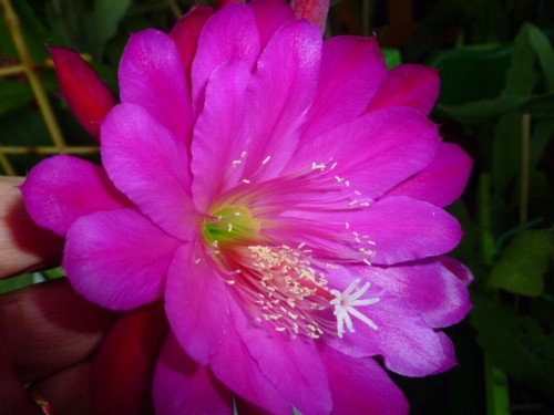 dunkel violett mit dunkelrotem Mittelstreifen und äusseren Petalen |