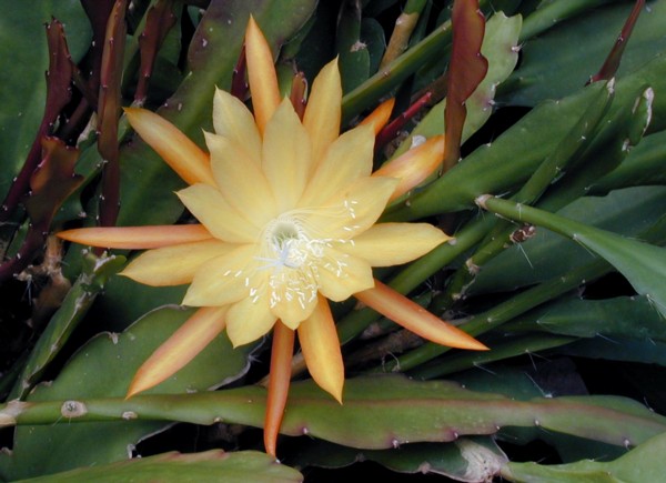 goldorange mit gelbem Mittelstreifen, äußere Petalen leuchtend orange |