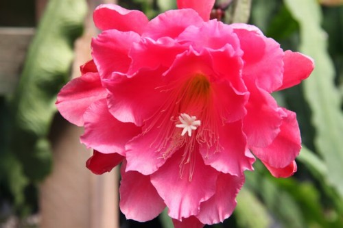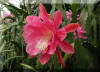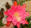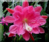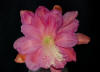 hell und dunkel rose, innere Petalen stark krispelig und gesprenkelt mit gekräuselten Rändern. Dritte Petalenreihe nicht gesprenkelt. Äussere Petalen rose. |