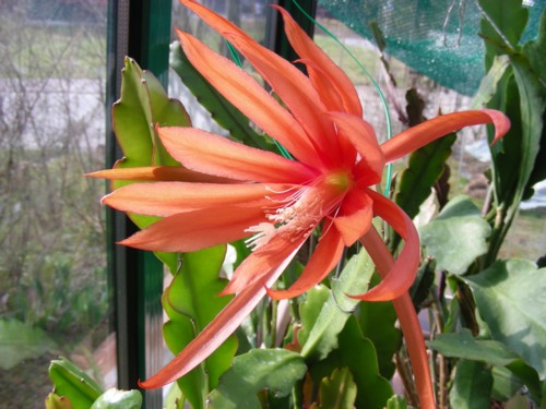 orange mit pfirsich-orangem Mittelstreifen. Äussere Petalen pfirsich-orange. |
