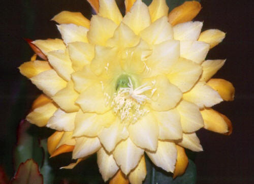 cremeweiß bis leicht gelb mit bronze-dunkelgelben äußeren Petalen |