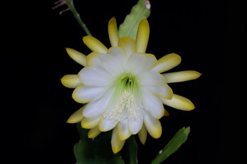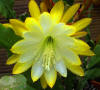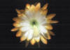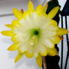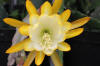 weiß mit gelben Spitzen. Äussere Petalen gelb. Gekräuselte Ränder. |