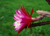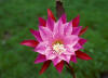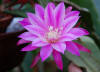 innere Petalen helllila mit dunkler lila Mittelstreifen. Äussere Petalen karminrot.