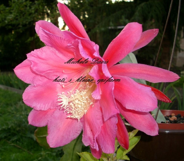 innere Petalen dunkel rose-pink mit korallen-pink überzogen, stark gekräuselte Ränder, äußere Petalen dunkles korallen-pink |