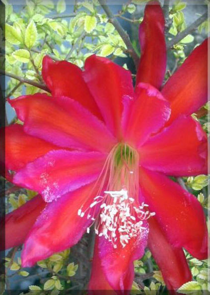 dunkelrot mit purpur Rändern, gekräuselt, äußere Petalen dunkelrot bis purpur |
