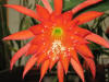 feurig orange mit goldorangem Mittelstreifen, äußere Petalen dunkler orange mit goldfarbenem Mittelstreifen |
