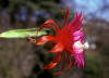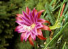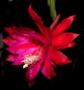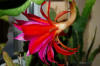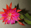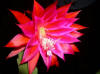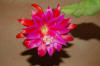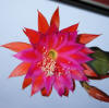 innerste Petalen lila mit rotem Mittelstreifen, nächste Reihe rot. Äussere Petalen orange. |