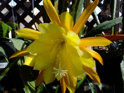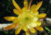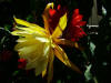 inneren Petalen sind gelb mit etwas dunkleren Rändern, nächste Reihe dunkel gelb, die nächste Reihe ist bronzeorange mit gelben Rändern, äußere Petalen orangegelb |