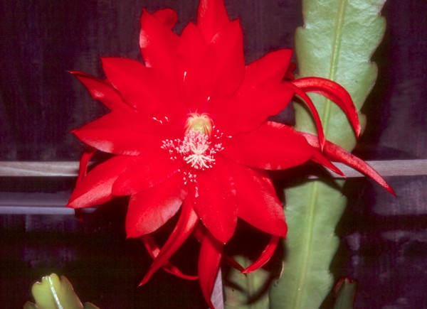 die inneren Petalen sind orange mit magenta Rändern im Schlund, äußere Petalen mittleres orange mit weißen Tupfen |