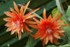 gold-hellbraun mit tief kirschrotem Schlund. Äussere Petalen gold-hellbraun. |