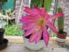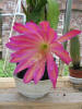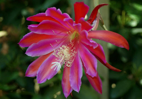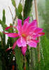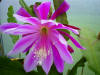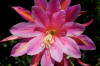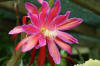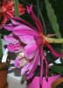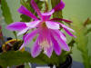 purpur mit rotorangem Mittelstreifen, äußere Petalen bronze violett gerandet |