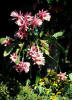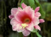 rosa mit weissen Schattierungen, roter Schlund. Äussere Petalen etwas dunkler rosa. |