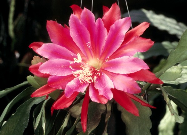 kirschrot, hellerer Schlund und orange-roter Mittelstreifen, nächste Reihe karmin mit kirschroten Rändern im Schlund und orangerotem Mittelstreifen, äußere Petalen dunkel karmin bis rot |