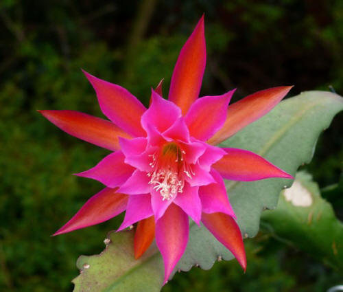 innere Petalen rosa. Äussere Petalen orange-rosa. |