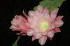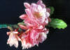 mittleres pink, innere Petalen gekräuselt, äußere Petalen pink mit weißem Mittelstreifen |