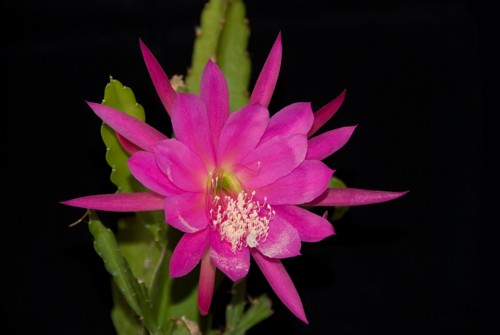 innere Petalen rosé mit rosa Mittelstreifen. Äussere Petalen purpur rosa. |