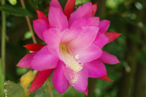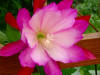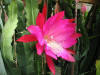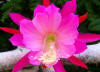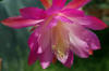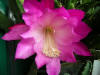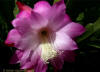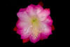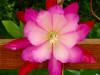 Dunkel purpur mit weiss gestreift. Weisser Schlund. |