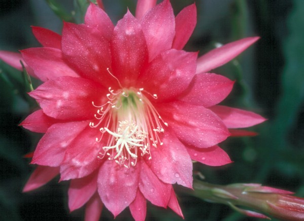 dunkel lachsrosa mit weißem Schlund, lachsrote Ränder im Schlund, äußere Petalen dunkel lachsrot |