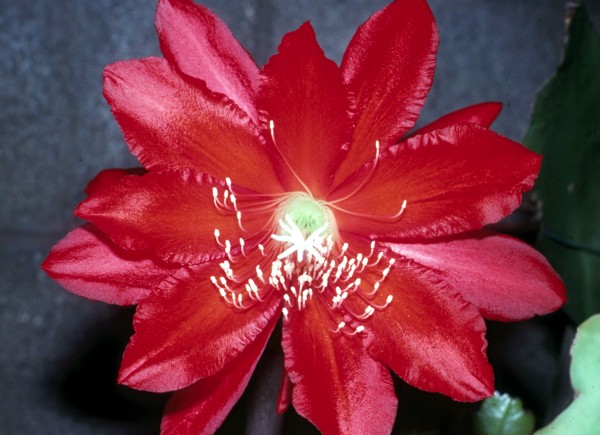 purpurrot mit magenta Rändern, Petalen gekräuselt und schillernd |