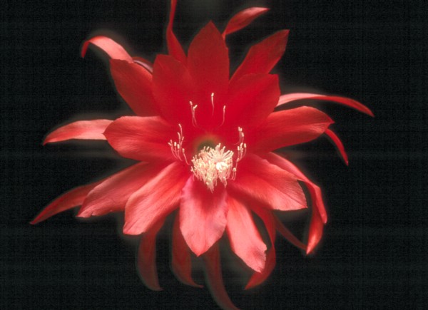 innere und äußere Petalen ziegelrot mit rotem Schlund |